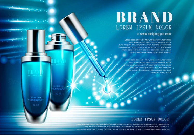 图穷联素材库 » 高端蓝色精华护肤品AI矢量海报模板Cosmetic posters template