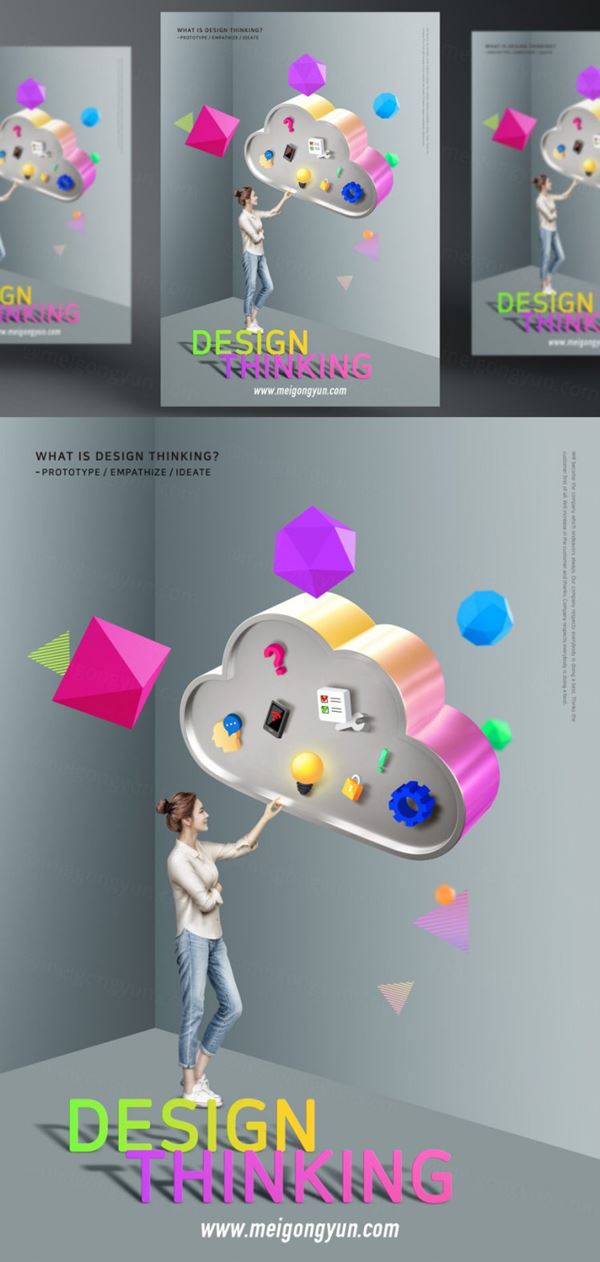 DESIGN THINKING 虚拟空间多边3D立体概念设计创意合成PSD分层海报 ti289a9101