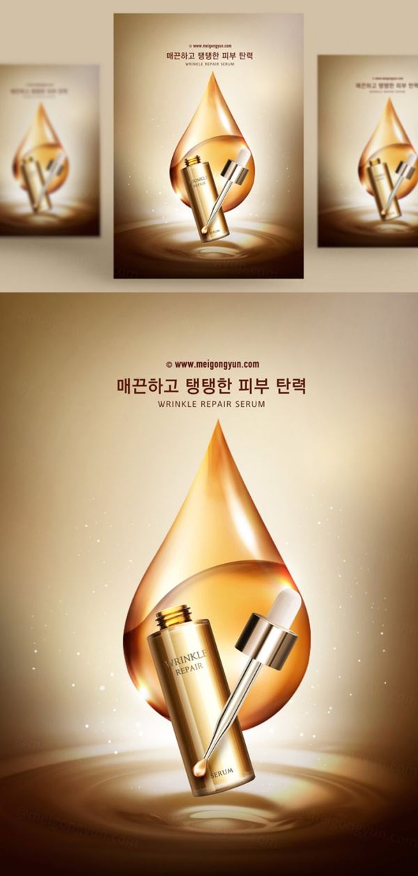 图穷联素材库 » 高端精华护肤品海报PSD模板Cosmetic posters PSD template