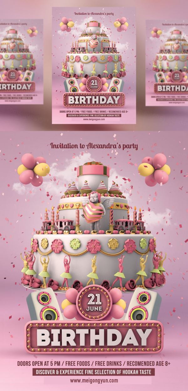图穷联素材库 » 女孩生日派对传单模版 Kids Birthday Party - Girls Flyer