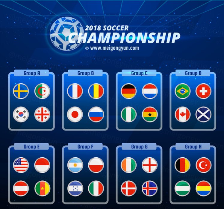 图穷联素材库 » 俄罗斯世界杯国际足球比赛对阵卡通海报挂画设计模板ai EPS矢量素材
