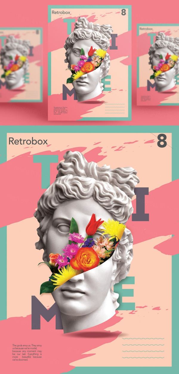 图穷联素材库 » 人物雕像鲜花抽象艺术海报PSD素材模板Figure Abstract Art Poster