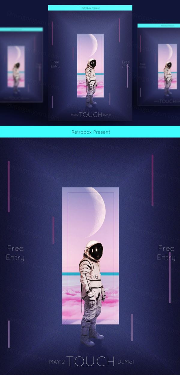 太空宇航员艺术海报PSD素材模板Figure Abstract Art Poster