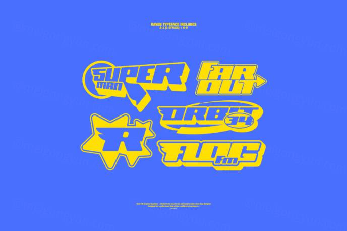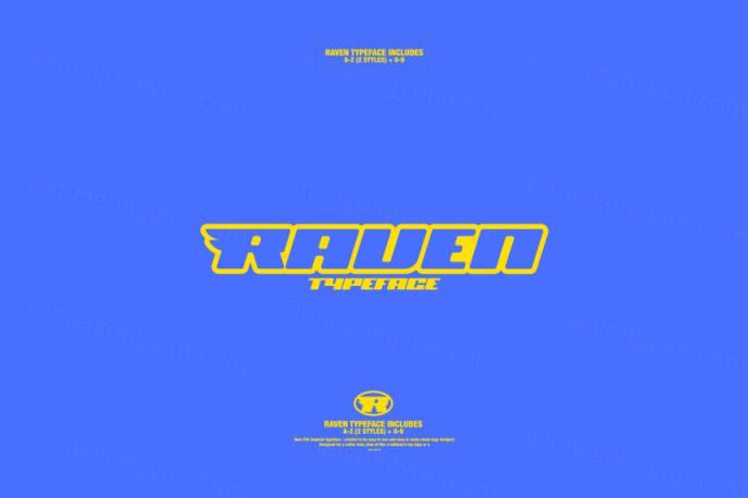 图穷联素材库 » Y2k复古千禧柔软带翅膀英文装饰排版字体 Raven Typeface