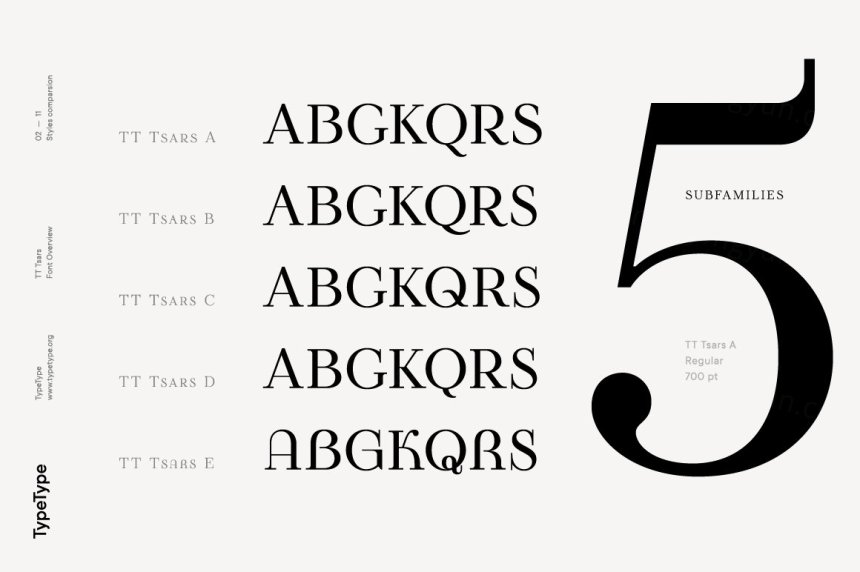 图穷联素材库 » 品牌设计杂志排版衬线英文字体大家族 TypeType - TT Tsars Font Family