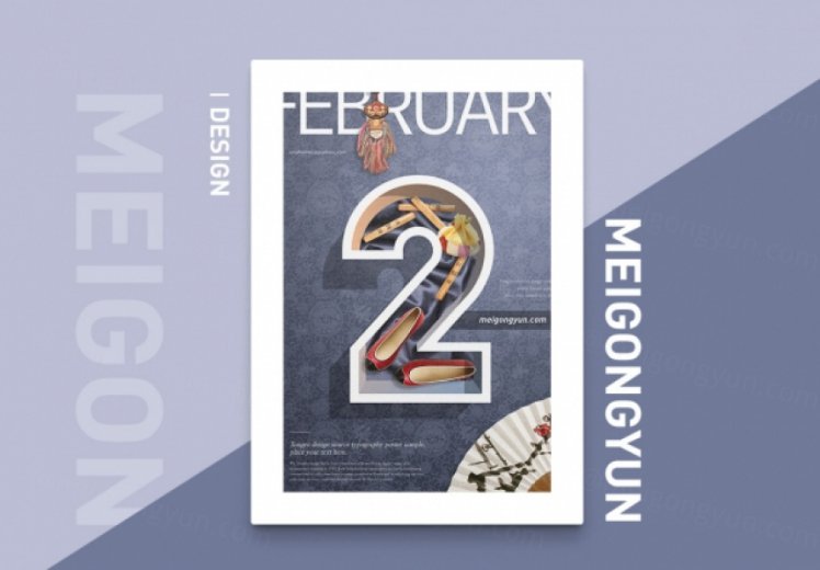春夏秋冬四季十二月数字合成海报PSD文件-2月份