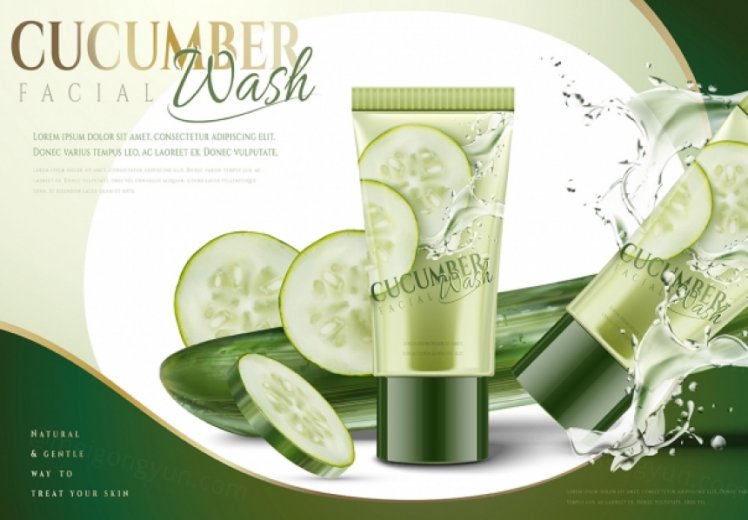 图穷联素材库 » Ai矢量绿色黄瓜保湿化妆护肤品洗面奶海报设计素材Cosmetic vector Poster
