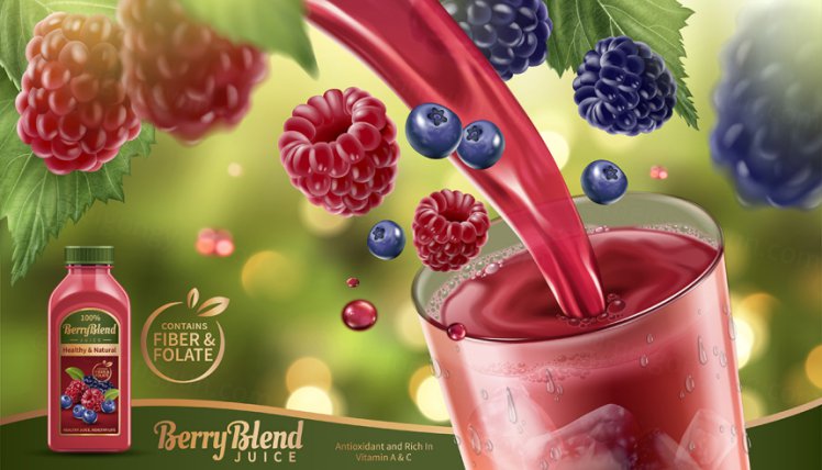 图穷联素材库 » 蓝莓树莓果汁饮料流动效果AI矢量海报设计素材模板Summer Drinks 03