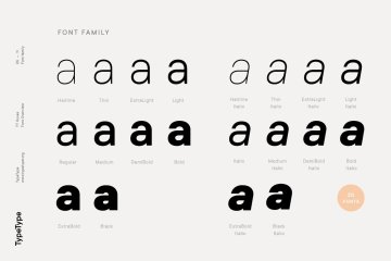 TT Hoves 字体系列由 23 种字体组成:10 种粗细(从 Hairline 到 Black)、10 种相应的斜体、1 种可变字体和 2 种轮廓样式。每种样式都包含 1348 个字形(轮廓样式除外)。TT Hoves 涵盖了几乎所有使用拉丁字母的语言,以及大多数使用西里尔字母的语言。此外,在 TT Hoves 中,您可以找到拉丁文和西里尔文的小写字母以及大量连字和文体替代品。为了让您更方便地使用替代风格,我们将它们分成单独的风格集,每集一个字母。