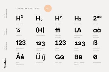 每种样式中的 37 种 OpenType 功能(轮廓样式除外):小写字母、替代样式、连字、旧样式图形、箭头和其他有用的功能 惊人的手动 TrueType 提示