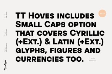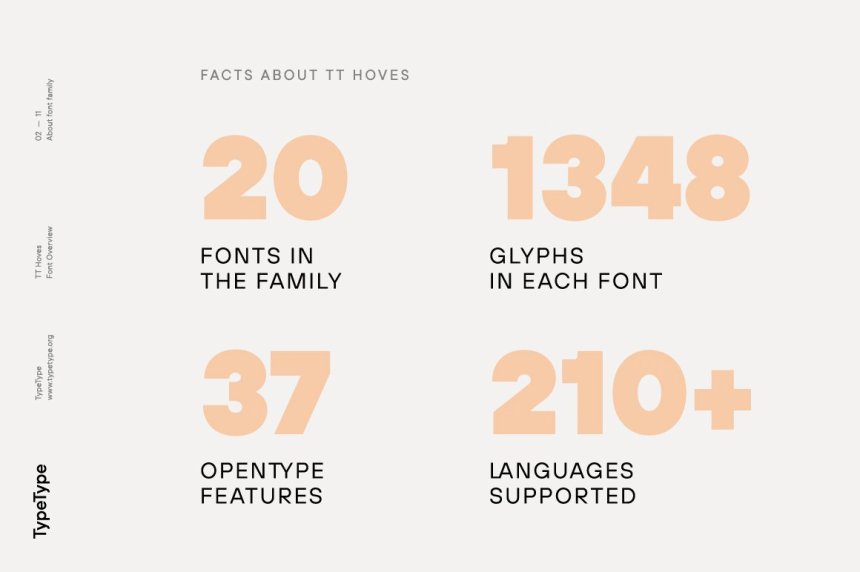关于 TT Hoves 2.000: TT Hoves 完成了致力于现代无衬线字体的 TypeType 字体三部曲。第一个是TT Norms - 用于尽可能广泛的任务的通用几何 sans。第二个是中性的 sans TT Commons,它最初是为 TypeType 工作室设计的公司字体。