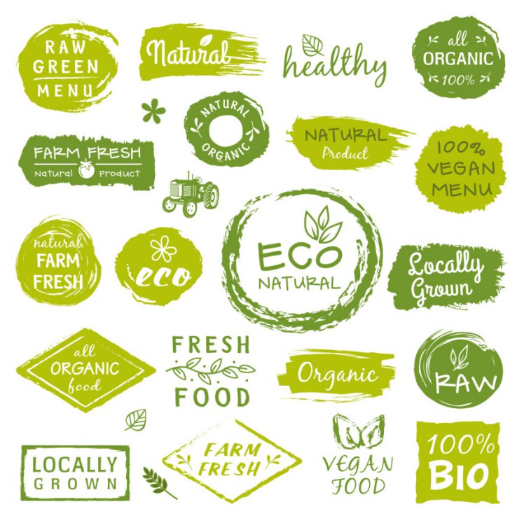 图穷联素材库 » 绿色健康有机食品标签餐厅标识素食咖啡馆产品包装矢量设计素材Products packaging