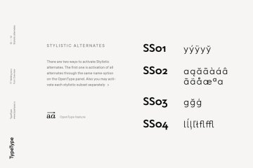 TT Wellingtons 由 9 个权重和 9 个真正的斜体组成。默认情况下,标准集使用旧式图形,但如有必要,您可以轻松打开衬里图形。该字体包括 20 多个连字、风格替代和其他有用的功能。TT Wellingtons 中使用的 OpenType 功能的完整列表是:ordn、sups、sinf、numr、dnom、lnum、onum、tnum、pnum、liga、dlig、salt、ss01、ss02、ss03、ss04、case、frac。