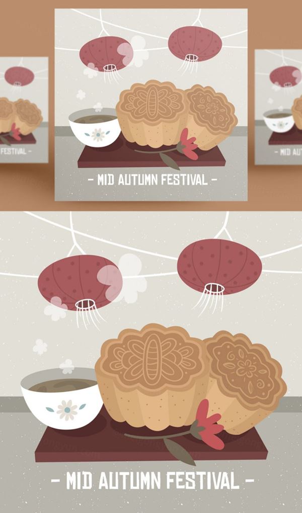图穷联素材库 » 中国传统节日中秋节月亮节日月饼矢量海报设计素材Mid autumn Festival