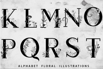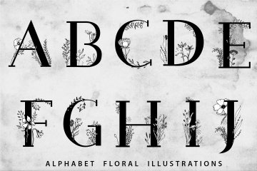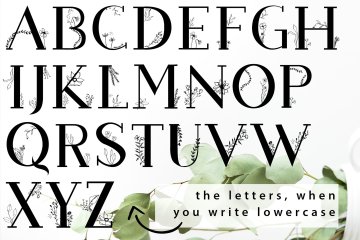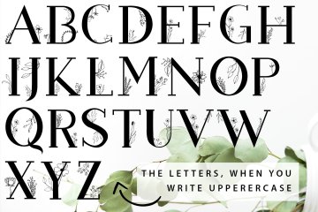 呈现平板衬线花卉字体 - 开花,装满大量附加内容 - 手绘和数字化花卉元素,“开花”字母及更多!