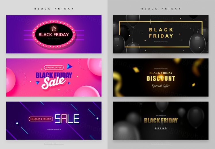 图穷联素材库 » 【粉色/霓虹灯/金色】黑色星期五外贸电商促销活动海报PSD模版