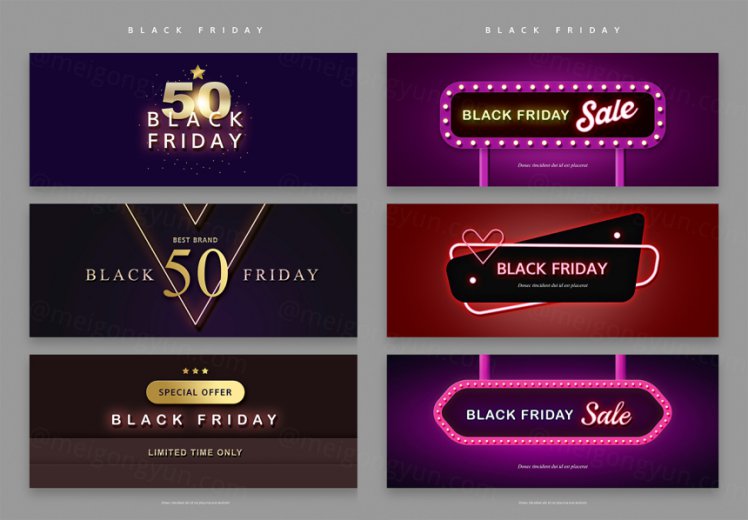 图穷联素材库 » 【金色/霓虹灯】黑色星期五外贸电商促销活动海报PSD模版