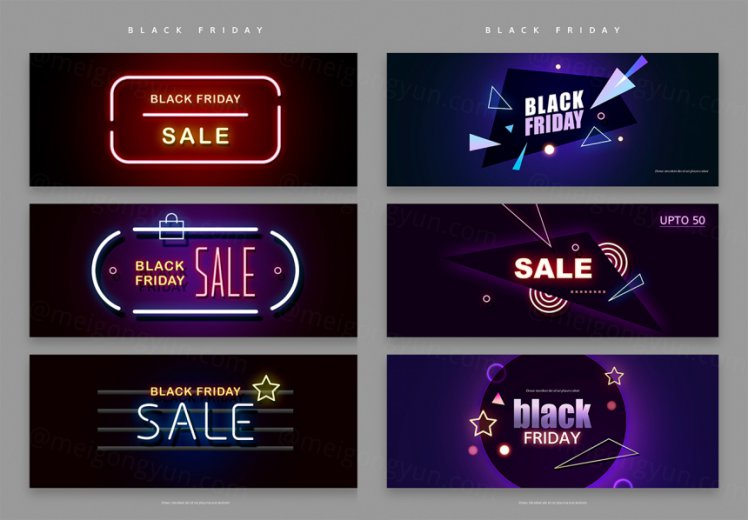 【霓虹灯】黑色星期五外贸电商促销活动海报PSD模版
