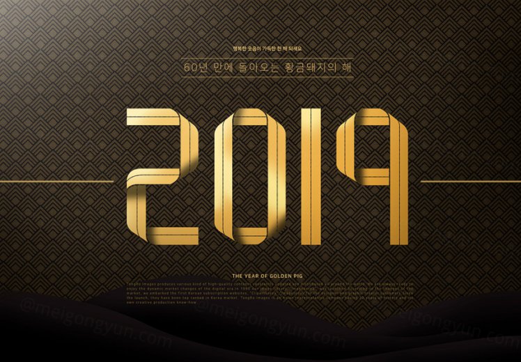 图穷联素材库 » 高端金色丝带质感新年主题字PSD海报模版素材
