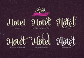 阿列克配备了大量的OpenType功能:要激活替代项,请在任何OpenType精明程序中单击Swash,Contextual,Stylistic或Titling Alternates或Discretionary Ligatures,Tabular或OldStyle Lining,或手动从字形调色板中选择字符。始终保持标准连接的最佳结果。