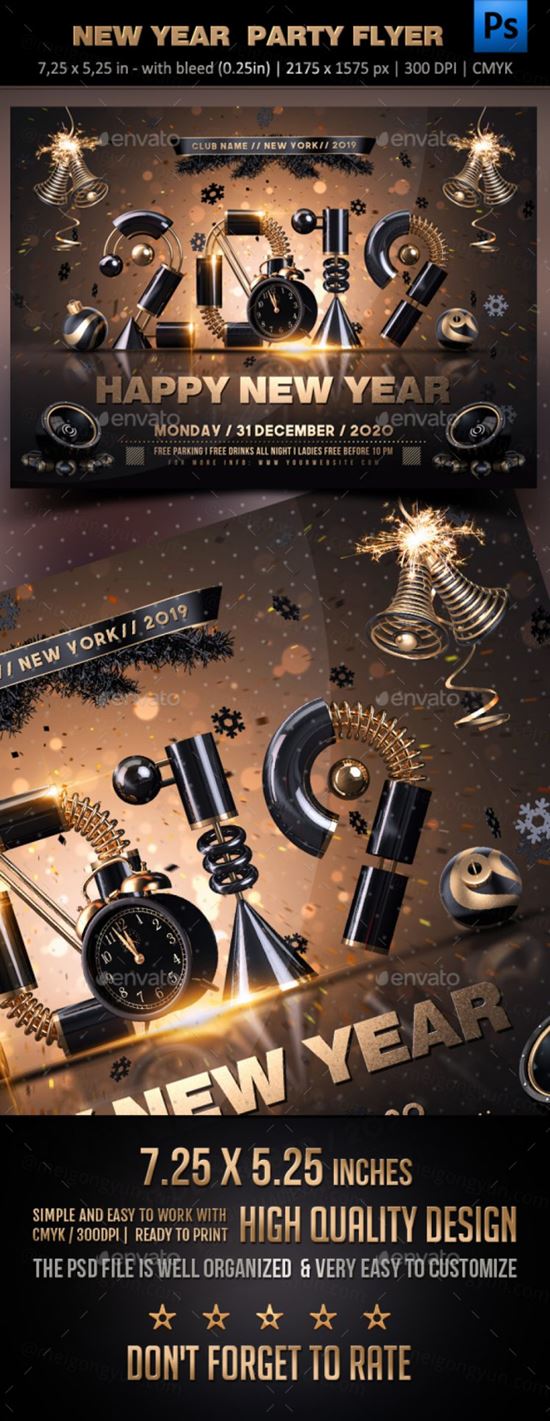 独特的年新年派对海报模板 new year party flyer 22652986
