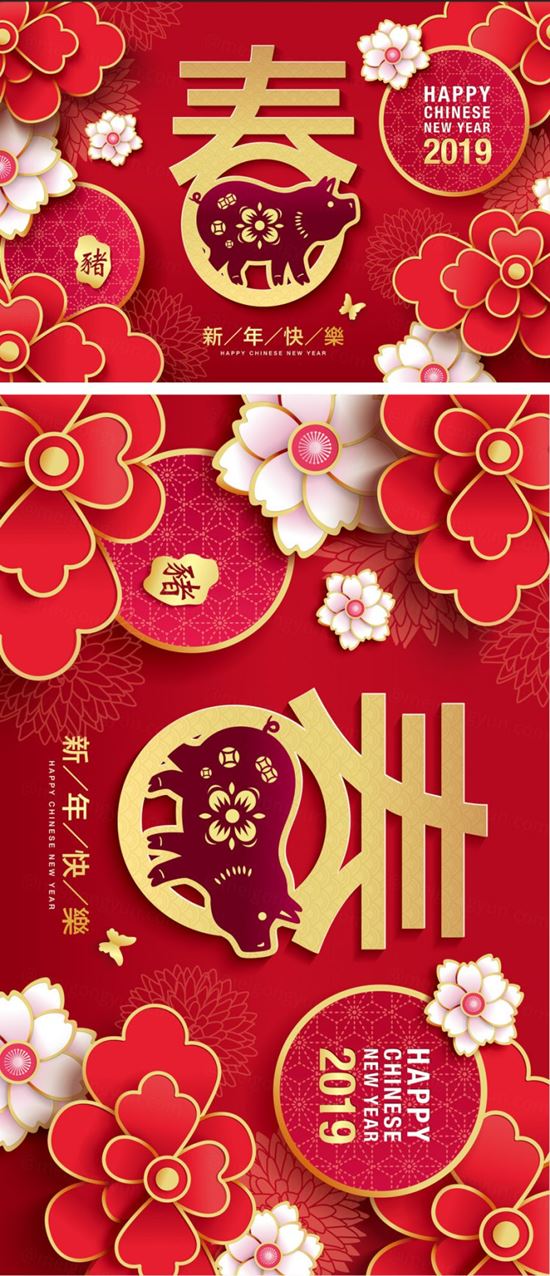 图穷联素材库 » 猪年中国传统新年十二生肖纸艺贺卡矢量素材 Chinese new year