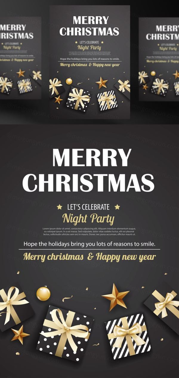 图穷联素材库 » 年黑金圣诞节新年快乐矢量插图海报素材 Merry Christmas