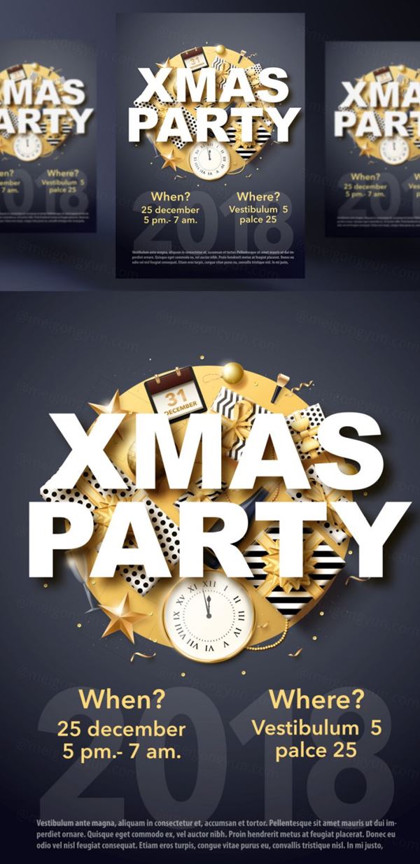 图穷联素材库 » 年黑金圣诞节新年快乐矢量插图海报素材 XMAS PARTY