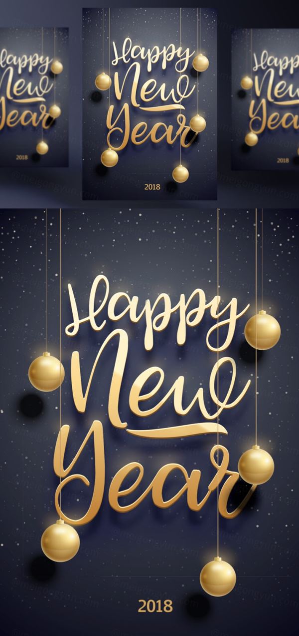 图穷联素材库 » 年黑金圣诞节新年快乐矢量插图海报素材 Happy New Year Party