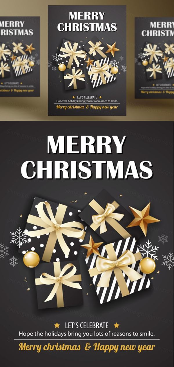 图穷联素材库 » 年黑金圣诞节新年快乐矢量插图海报素材 Merry Christmas