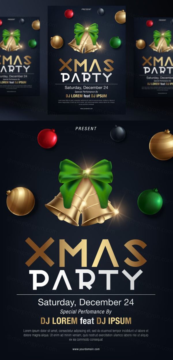 图穷联素材库 » 年黑金圣诞节新年快乐矢量插图海报素材 XMAS PARTY
