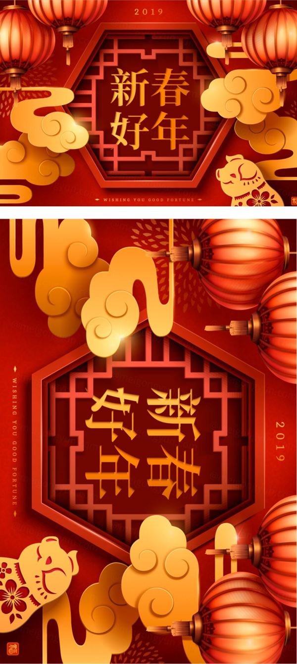 【新春好年】年农历新年传统年画迎新矢量海报素材