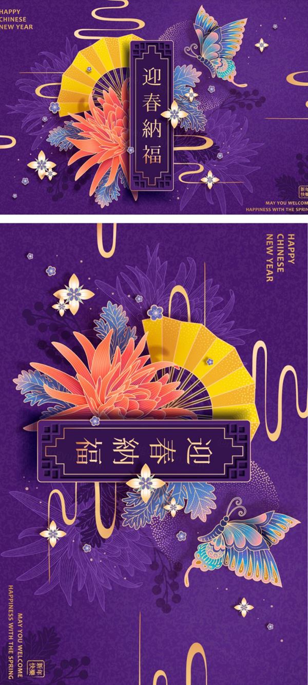 【迎春纳福】年农历新年传统年画迎新矢量海报素材