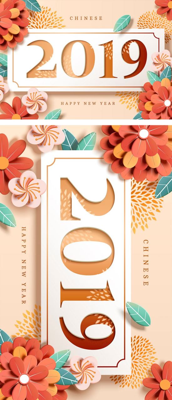 猪年精美花纸艺术新年招贴年画设计矢量海报素材