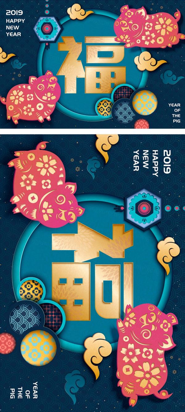 图穷联素材库 » 猪年传统生肖牡丹纸艺风格新年横幅海报矢量素材【EPS、JPG】