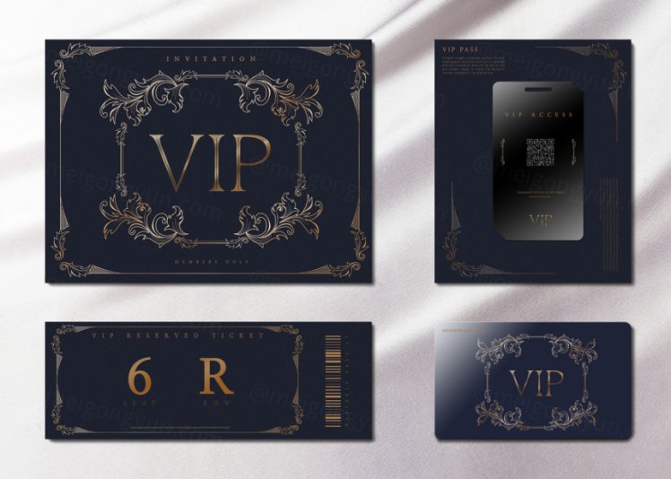 图穷联素材库 » 高质量烫金宝蓝色VIP卡抵用券邀请函PSD模版素材