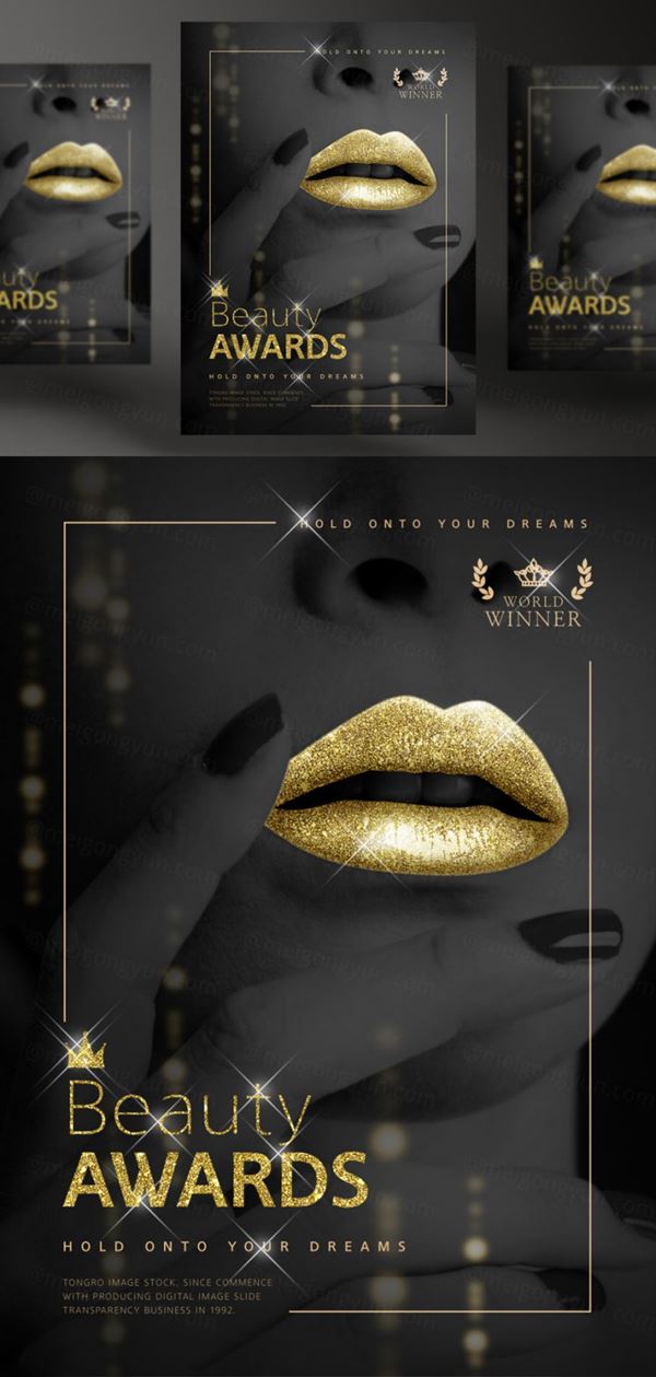 年最新颁奖盛典奖杯奖牌PSD海报模版素材 World Winner Beauty Awards