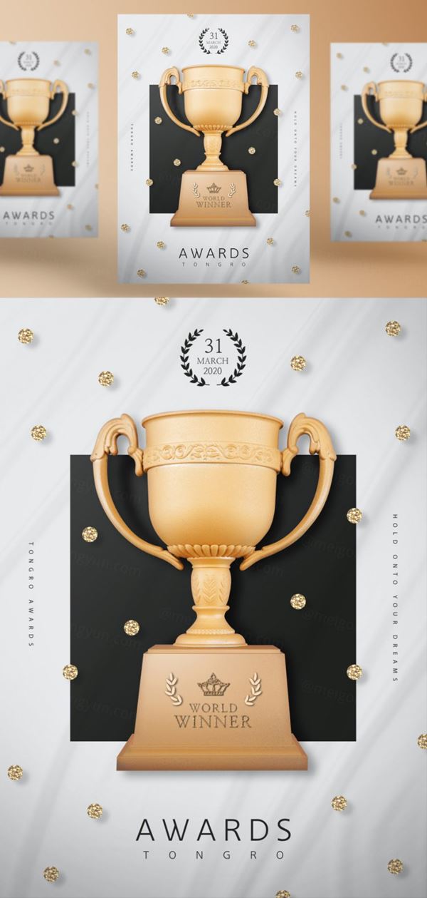 年最新颁奖盛典金色奖杯奖牌PSD海报模版素材 World Winner Award