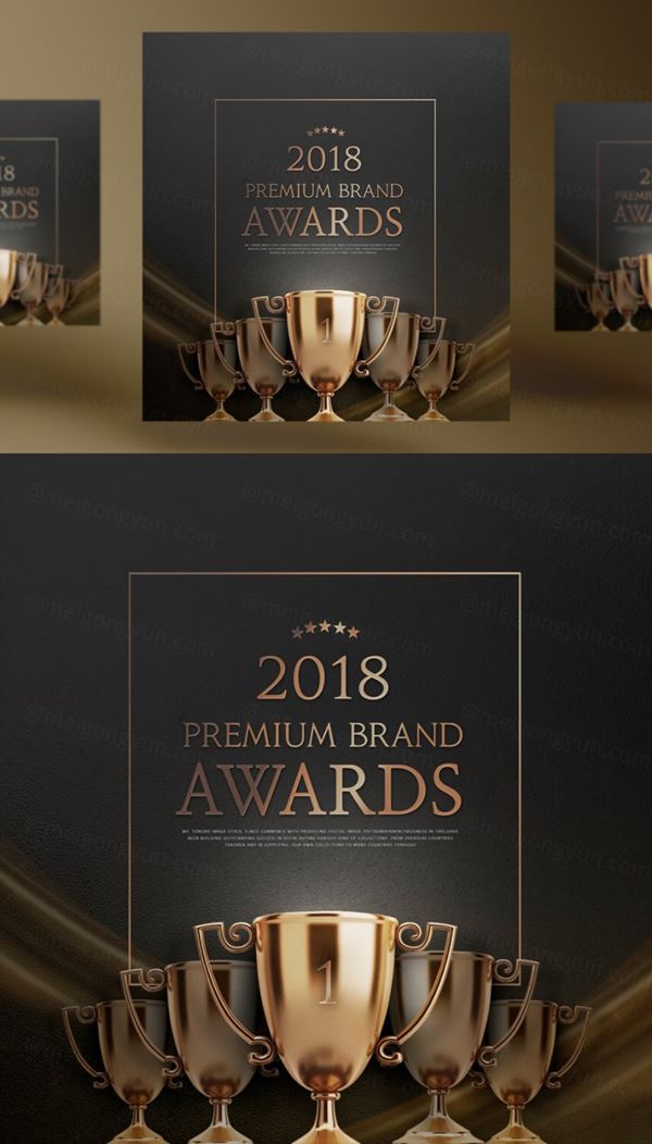 图穷联素材库 » 年度品牌奖牌评选颁奖一堆奖杯黑金PSD海报素材