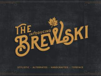 图穷联素材库 » 手拉复古风格啤酒印刷展示衬线英文字体Brewski Brewery Typeface