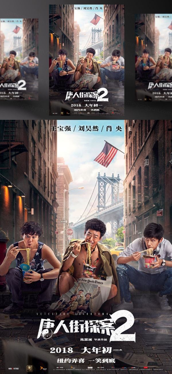 《唐人街神探2》年王宝强最新大片电影海报PSD高清分层源文件素材