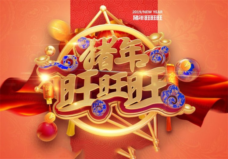 “猪年旺旺旺”猪年新年3D立体C4D工程文件模型艺术字体PSD设计元素材