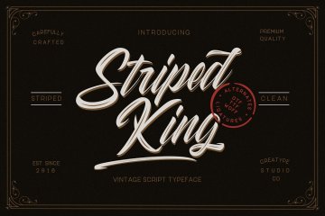 你好!Striped King是一款复古风格的现代字体,在各种项目中都很棒。这为项目提供了优雅而极具时尚感的吸引力。