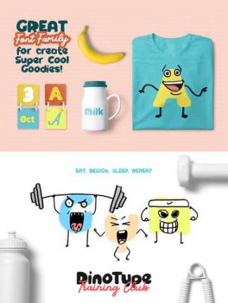 图穷联素材库 » 有趣的涂鸦创意英文字体 DinoType Font Family+Bonus