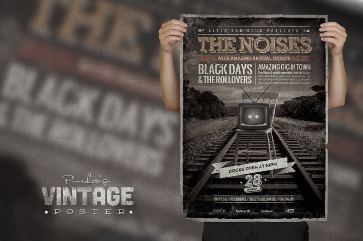 摇滚演唱会复古海报传单设计模板 Vintage-PosterFlyer