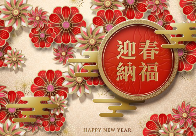 图穷联素材库 » 【迎春纳福】猪年农历新年复古传统迎新纸艺金边元素矢量海报素材