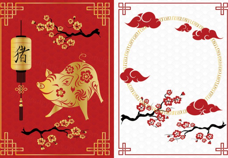 图穷联素材库 » 猪年传统灯笼樱花中国新年矢量素材