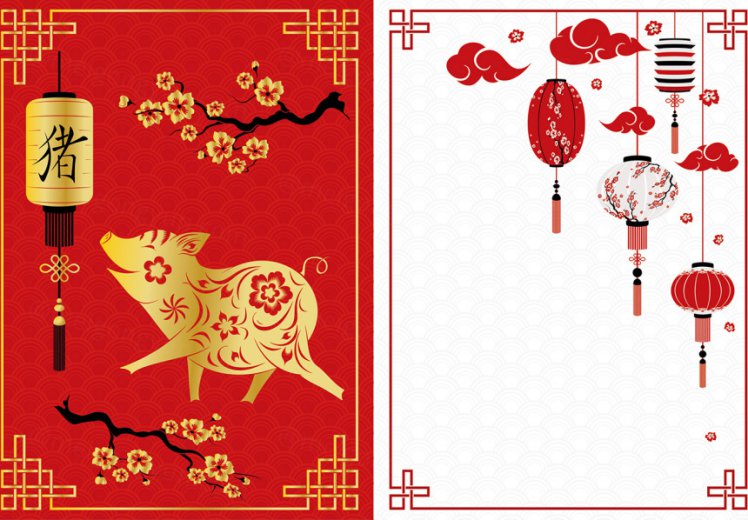 图穷联素材库 » 猪年传统灯笼樱花中国新年矢量素材