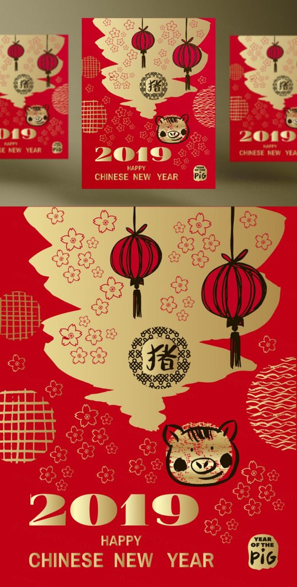 图穷联素材库 » 猪年东方日式中式复古传统新年红包矢量素材