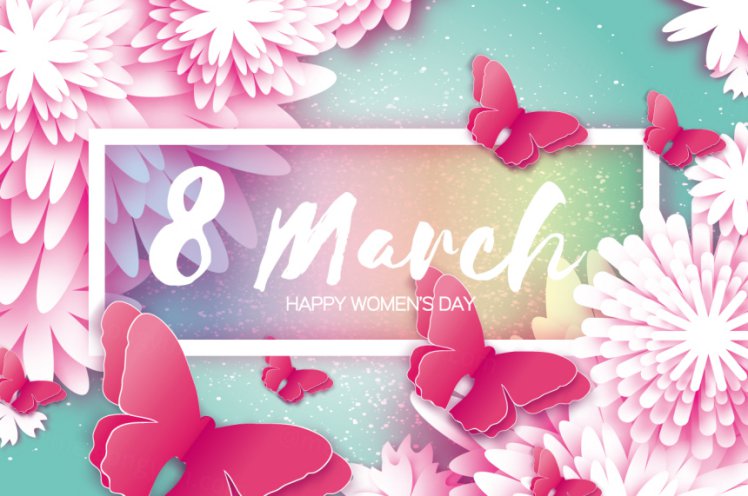 图穷联素材库 » 粉白剪纸蝴蝶花卉贺卡三八妇女节母亲节快乐海报矢量素材